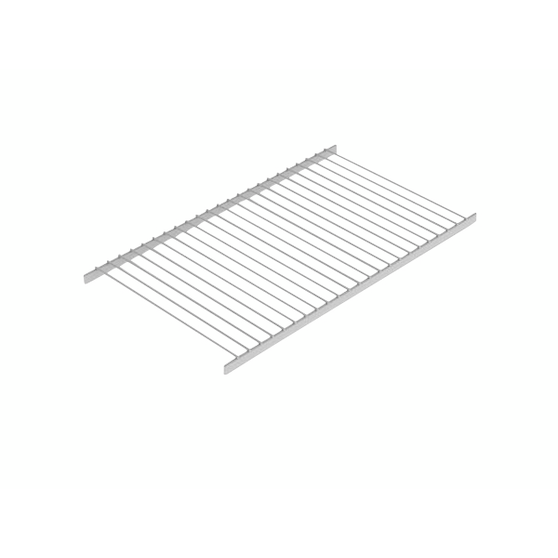 Tähän malliin suositellaan LM 99 -hyllynkannakelistaa, jonka ohjaustapit helpottavat asennusta. Tukeva tasohylly on valmistettu laadukkaasta teräslangasta.