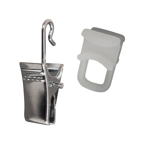 Helposti liukuvat muoviset liu´ut U-kiskolle. Nipistimessä koukku, jolla nipistimen voi kiinnittää liukuun. Pakkaus sisältää 20 kpl.