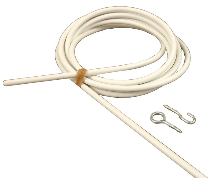Määrämittaan leikattava verhojousi. Mukana 4 koukkua ja silmukkaa.