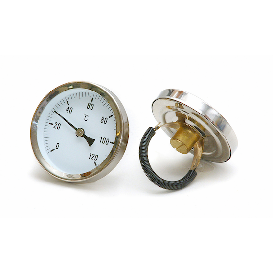 Jousella putken päälle kiinnitettävä pintalämpömittari 0-120°.