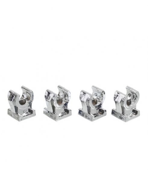 Putkikannake, yhdelle 10 mm:n putkelle, materiaali muovia, kromattu. Pakkauksessa 4 kpl.