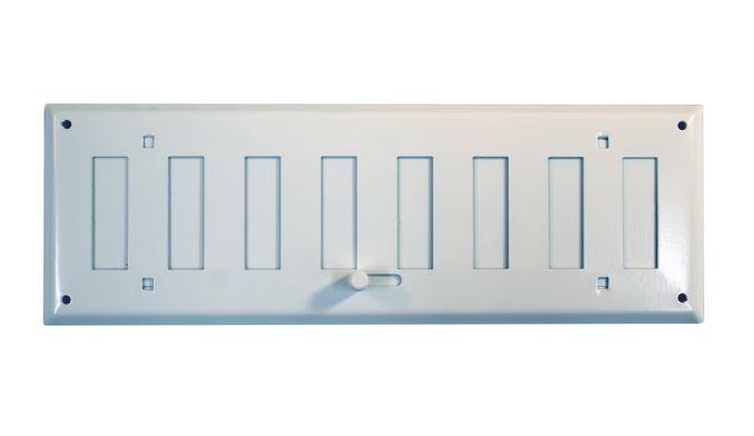 Säädettävä virtaussäleikkö 400 x 100 mm. Sopii asennettavaksi oviin, tasoihin ja kaapistoihin. Polttomaalattu teräs. Väri valkoinen.