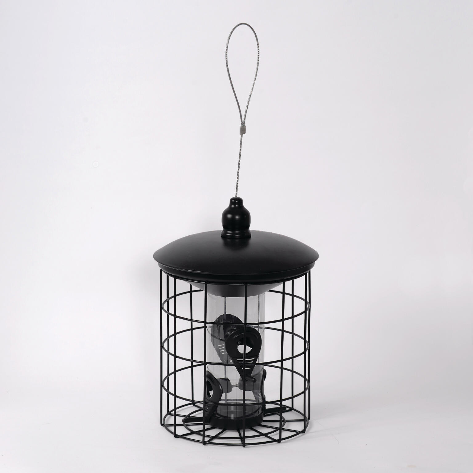 Siemenautomaatti, jonka suojaristikko pitää suuret linnut poissa. Täytetään helposti yläosassa olevan kannen kautta.