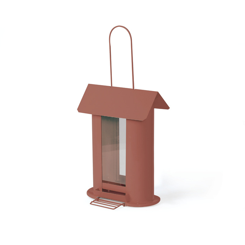 Siro linnunruoka-automaatti harkitussa värissä. Helppo puhdistaa. Kaksi istumapaikkaa. Teräspeltiä ja polystyreeniä. 21x13,5x24cm.