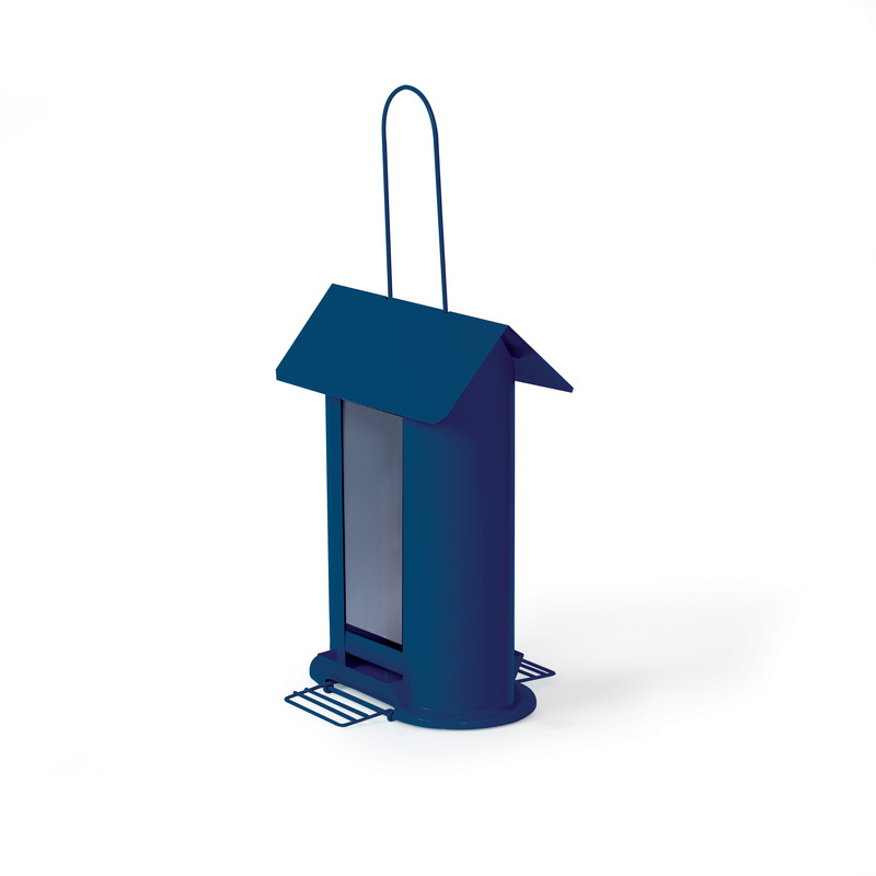 Siro linnunruoka-automaatti harkitussa värissä. Helppo puhdistaa. Kaksi istumapaikkaa. Teräspeltiä ja polystyreeniä. 21x13,5x24cm.