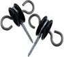 Veräjäeristin veräjänkahvan vastakappaleeksi. Sopii langoille, köysille ja ohuille nauhoille. Sähköä johtavat osat ruostumatonta terästä.