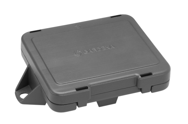 GARDENA-robottiruohonleikkurin liittimien talvisuoja. Robottileikkurin ja latausaseman ollessa talvisäilytyksessä kaapelit liittimineen voidaan säilyttää turvallisesti ja säältä suojassa kestävässä muovilaatikossa.