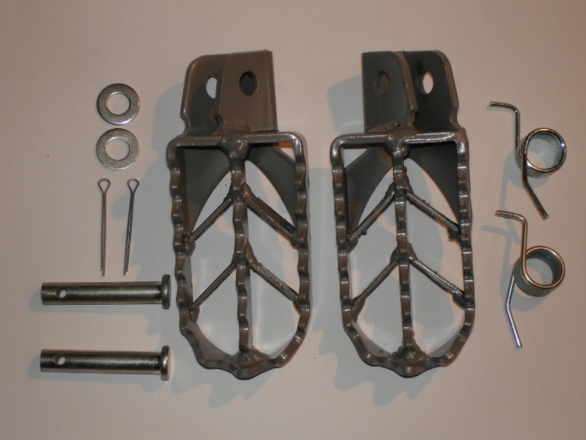 Vahvistetut teräs jalkatapit. Kuvassa olevat kiinnikkeet ja jouset tulee mukana