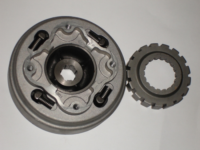 Kytkinkello levyineen. Sopii minicrosseihin missä on kytkin kampiakselin päässä, esim: Stomp 120cc, MCM120cc ym.