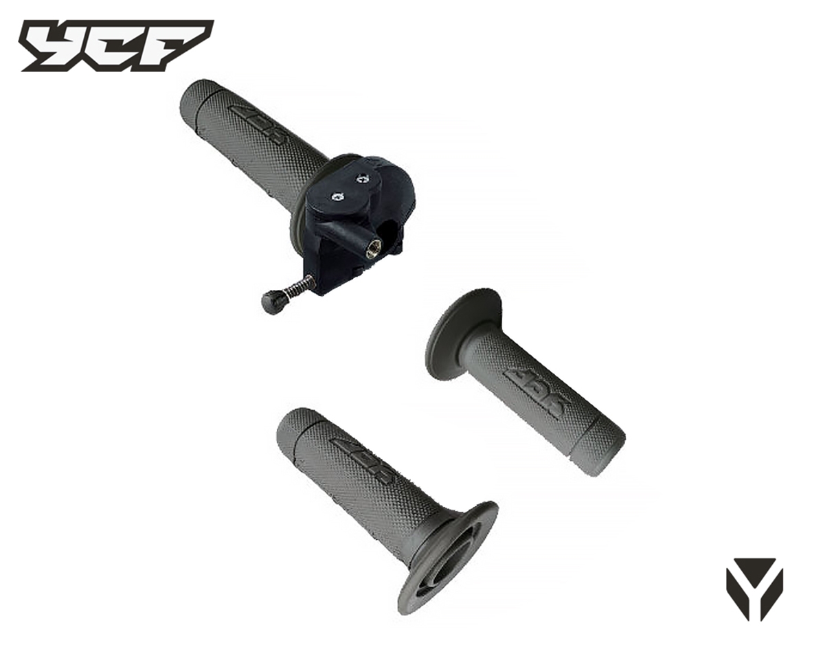 Alkuperäinen laadukas YCF pikakaasukahva, lyhyt kääntöliike. Mukana tulee harmaat tupit. Rajoitin ruuvilla.
