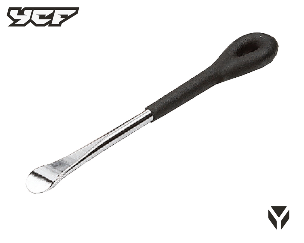 Lusikkamallinen rengasrauta ohuella kärjellä, tosi lujaa tekoa. Hyväksi todettu minicrossien renkaan vaihtoon.