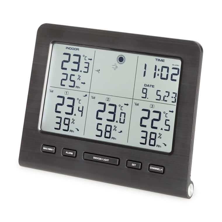 Tällä langattomalla mittarilla tarkkailet kätevästi lämpötilaa ja kosteutta jopa neljästä eri paikasta! Mukana tulee kolme erillistä lähetintä, jotka voi asettaa tarpeen mukaan sisälle tai ulos. Lukemat kantautuvat näyttöyksikköön jopa kymmenien metrien päästä otollisissa olosuhteissa. Voit siis seurata samalla mittarilla lämpötilaa ja kosteutta esimerkiksi terassilla, ulkona, autotallissa, matkailuautossa, makuuhuoneessa jne. Näyttöyksikkö näyttää myös sijoituspaikkansa lämpö- ja kosteuslukemat. Näyttö on taustavalon ansiosta helposti luettavissa myös hämärässä.