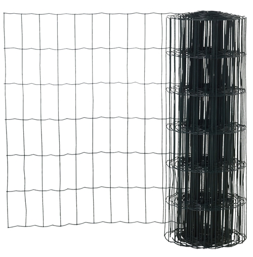 Muovipinnoitettu PVC-pinnoite, Lanka 1,7/2,22mm , hitsattu verkko. Silmäkoko 5 x 10 cm. Korkeus 100 cm. Rullassa 25 m.