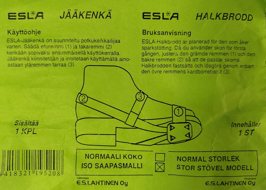 Nauhoilla kenkään kiinnitettävä liukueste, jonka avulla on erittäin tehokasta liikkua potkukelkalla.