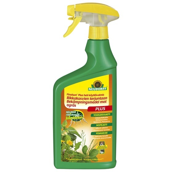 Rikkakasvien, sammalien ja levien torjuntaan. Käyttövalmis spray poistaa tarkasti ja nopeasti voikukat, vuohenputket, peltokortteet, ratamot, tähtimöt, nokkoset ja ohdakkeet ja muut rikkaruohot.