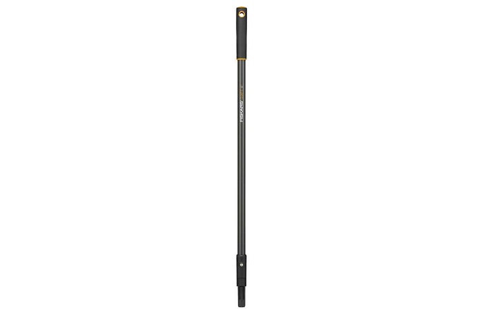 Pisaranmuotoisen varren keskiosassa on pehmeä, miellyttävän tuntuinen tartuntapinta. Varren salpa lukitsee liukuosan automaattisesti, työkalu on heti valmis käyttöön. Käytetään Fiskars QuikFit™ -istutustyökalujen ja muiden pääosien kanssa. Varren päässä ripustuslenkki tuotteen säilytykseen.