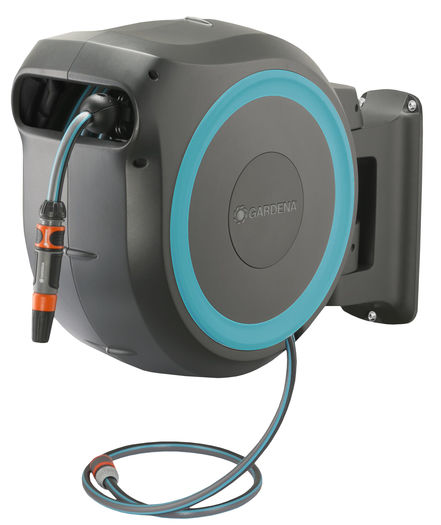 Tämä korkealaatuinen seinäletkukela sisältää kaiken tarvittavan: seinäteline, liitosletku, Orginal GARDENA System -liittimet, asennustarvikkeet sekä ruiskusuutin kahdella suihkumuodolla.