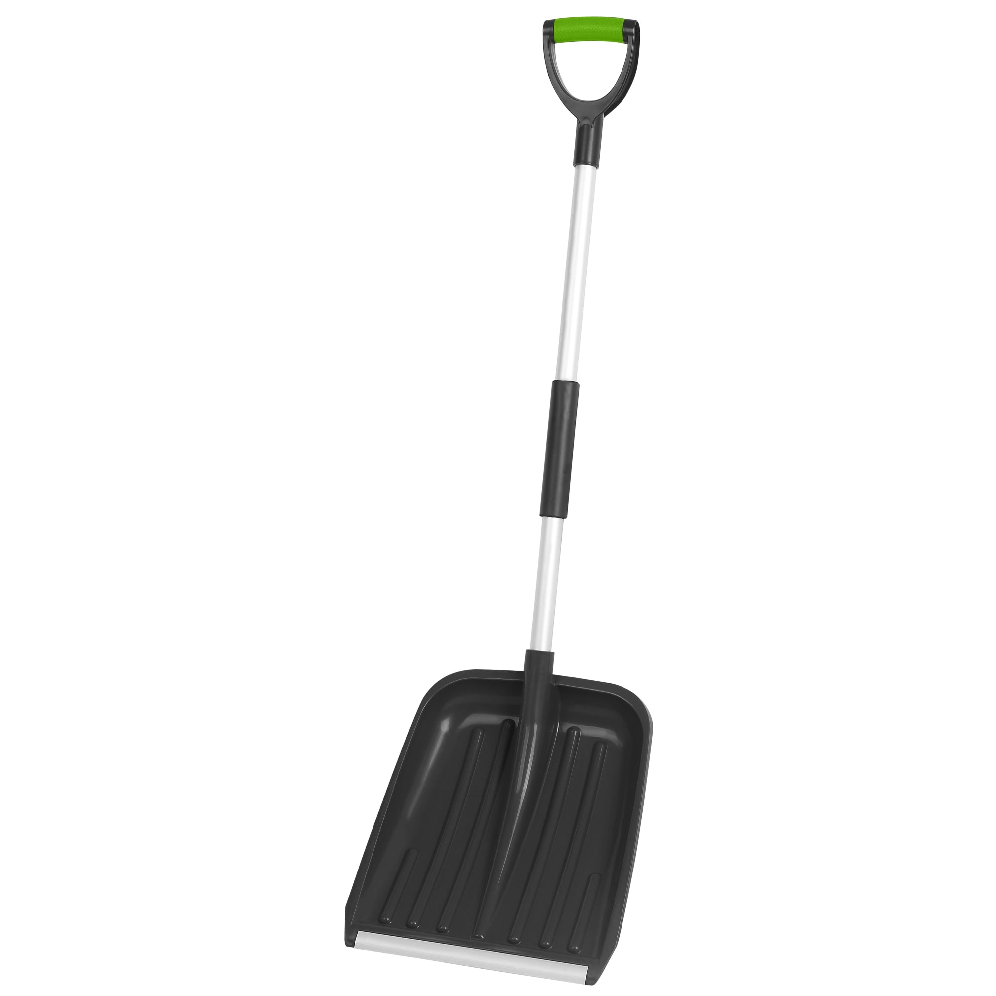 Lujatekoinen lumilapio, jossa muovikuuppa hyvin lumeen purevalla alumiinilistalla.