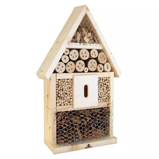 Talvehtimisapu ja pesimäpaikka hyödyllisille hyönteisille. Hyönteishotellilla vaalit puutarhassasi mm. pölyttäjiä. Talvehtimisapua suosivat ja tarvitsevat esim. kimalaiset, mehiläiset, leppäkertut ja harsokorennot. Mitat 57,5 x 36,3 x 10,2 cm.