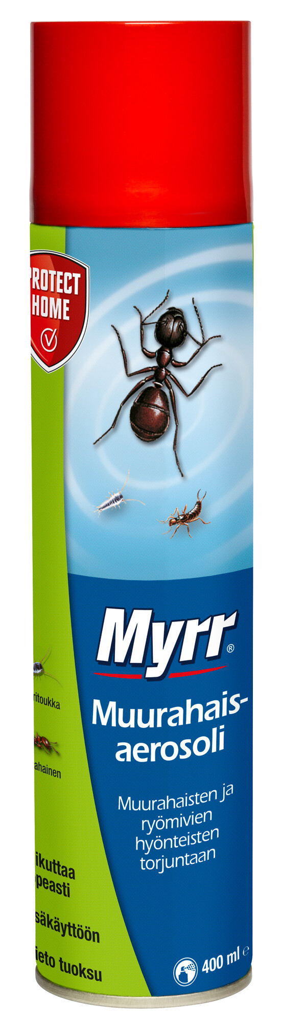 Myrr Muurahaisaerosoli on tehokas sumute muurahaisten ja muiden ryömivien hyönteisten torjuntaan sisätiloissa. Vaikuttaa nopeasti. Mieto tuoksu.
