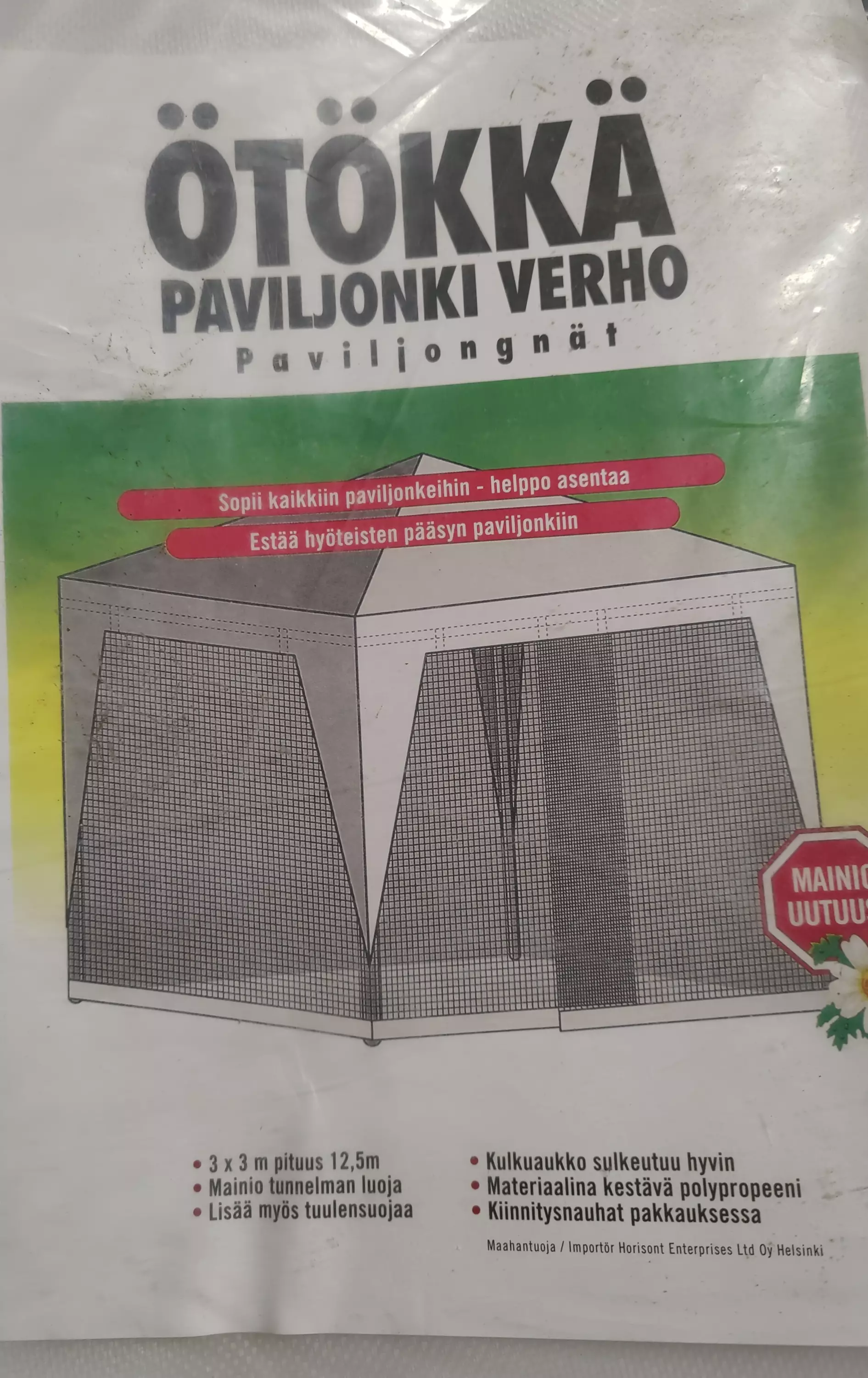 Paviljonki verho Kestävä polypropeeni, 3x3x12,5m. Kiinnitys nauhat sisältyvät pakkaukseen.