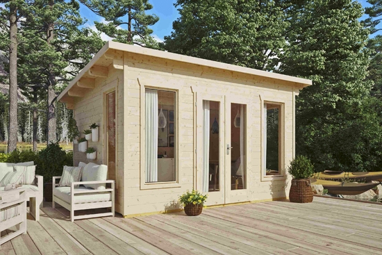 Cello Sundsvall on moderni ja tilava piharakennus, joka sopii moneen käyttötarkoitukseen. Sitä voi käyttää kesähuoneena, vierasmajana tai kesäkeittiönä – vaihtoehtoja on monia. Korkeat ikkunat ja lasitetut ovet tuovat runsaasti valoa sisätiloihin.