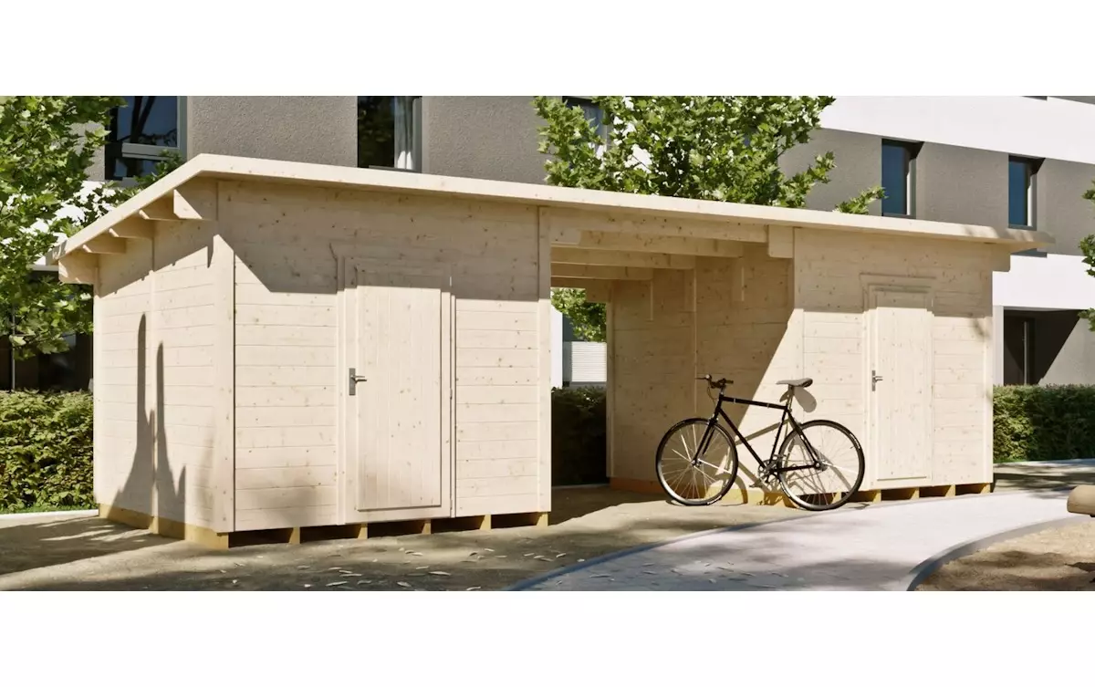 Pihavarasto + katos Cello Linköping 21m²