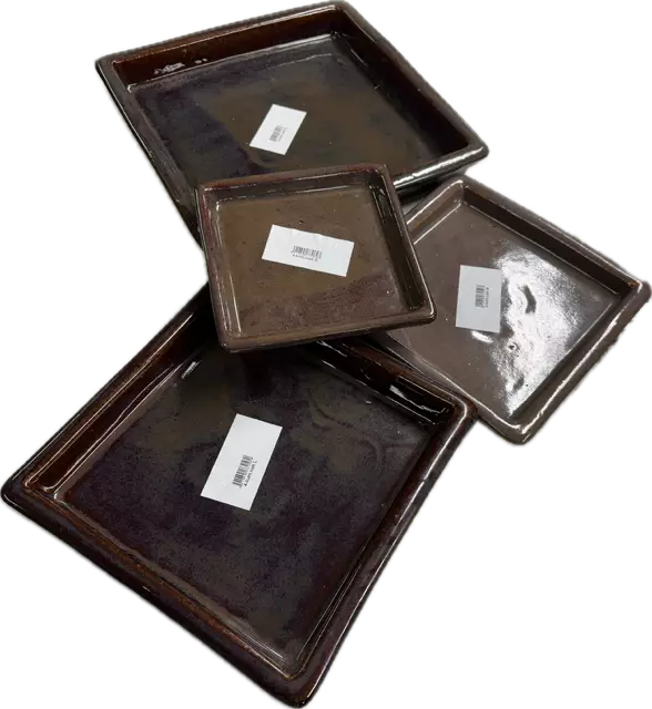 Tästä edullisesti 4 kpl setti tyylikkäitä ruukun aluslautasia. Kuva viitteellinen, lautasten sävy vaihteelee. Väri "Running Brown". Lautasten koot: 17, 21, 25 ja 30 cm.