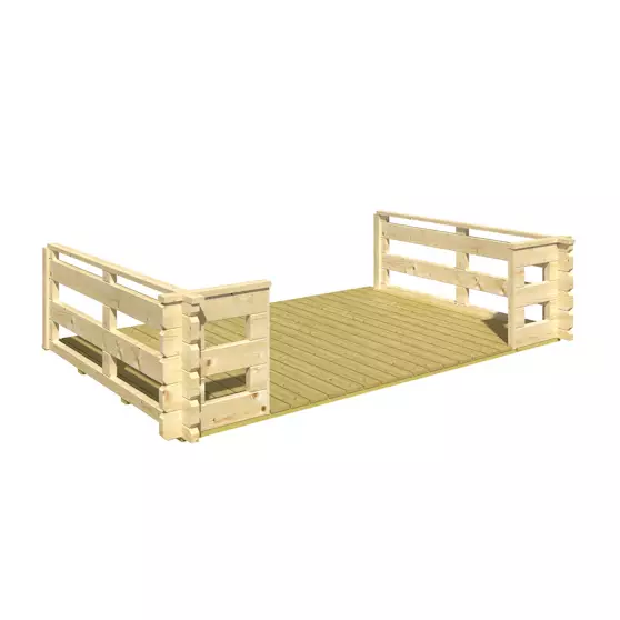 Lisävarusteena myytävä Trondheim mökin terassi tuo mukavasti lisätilaa ulkona viihtymiseen. Lisäksi saatavana myös Trondheim mökin kanssa yhteensopiva terassikatos.