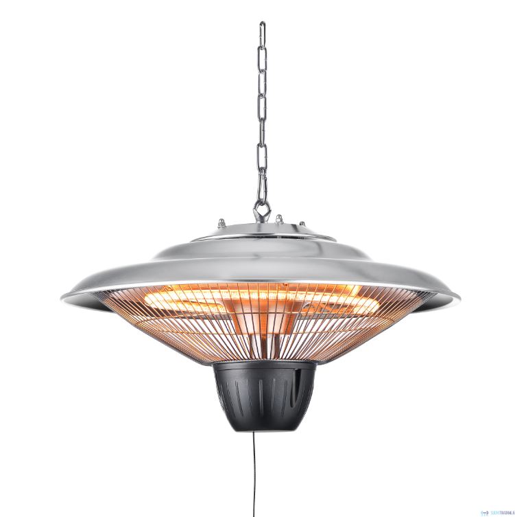 Erittäin kompakti terassilämmitin, joka antaa sekä lämpöä että valoa. Ripustettavassa lämmittimessä on moderni muotoilu ja se sopii sekä sisä- että ulkokäyttöön. Alumiinikuoren ansiosta, malli on erittäin kevyt. Terassilämmittimen etäisyys lattiasta on oltava vähintään 180 cm ja katosta vähintään 30 cm.
