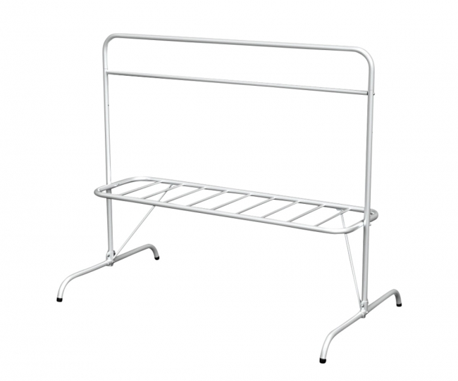 Kiinteäkehäinen tuuletusteline, tamppauslavan koko 1950 x 600 mm. Valmistettu sinkitystä teräsputkesta. Rungon halkaisija 38 / 28 / 19 mm.