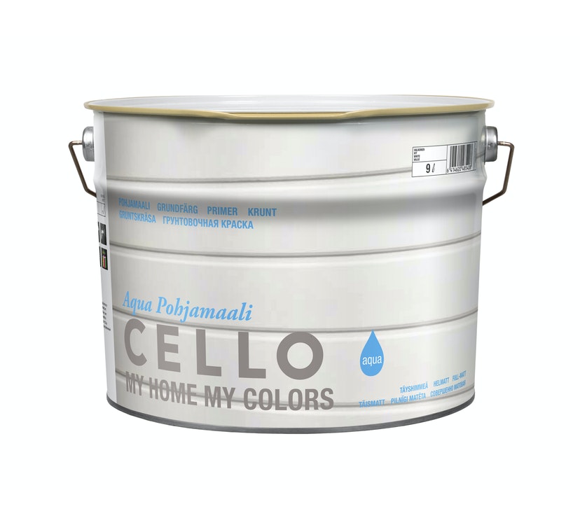 Täyshimmeä Cello Aqua -pohjamaali on pellavaöljyä sisältävä vesiohenteinen alkydipohjamaali. Maalausvälineet voi käytön jälkeen pestä vedellä. Maalipinta on kosketuskuiva 6 tunnin kuluttua ja päällemaalattavissa 16 tunnin kuluttua maalaamisesta. Valkoista Cello Aqua -pohjamaalia voi käyttää sävyttämättömänä tai sen voi sävyttää haluamaansa vaaleaan sävyyn. Valikoimastamme löydät myös tarpeisiisi sopivan pintamaalin.