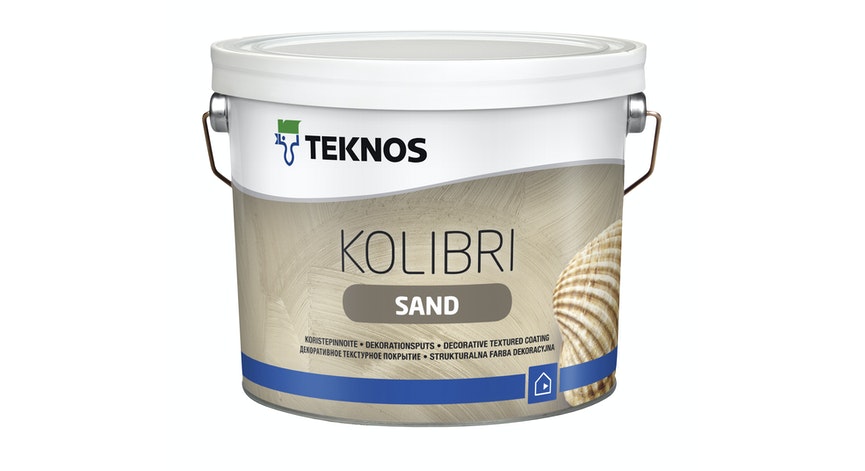 Kolibri Sand on keskikarkea, kevyt koristepinnoite, jota käytetään kuivien sisätilojen seinä- ja kattopintojen koristeluun. Pinnoitteella teet pinnasta elävän ja luot tilaan persoonallista tunnelman. Teknoksen Kolibri Sand -koristepinnoite sopii uusien tai aikaisemmin maalattujen betoni-, rappaus-, tasoite-, tiili- ja rakennuslevypintojen käsittelyyn. Kolibri Sand kestää lievää kosteutta, minkä ansiosta se soveltuu myös esimerkiksi saunan palomuurien pinnoittamiseen. Sen pinta on kauniin elävä ja täyshimmeä.