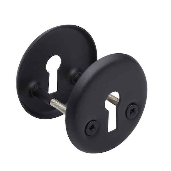 Sinkistä valmistettu musta avainkilpi. Vakiotoimitus 40 mm ovelle.