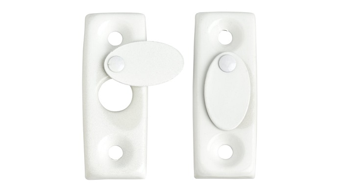Ikkunan teräksinen peitekilpi on varustettu läpällä, joka peittää avaimenreiän. Väri valkoinen. Pakkaus sisältää 2 kpl ikkunakilpiä sekä ruuvit kiinnitykseen.