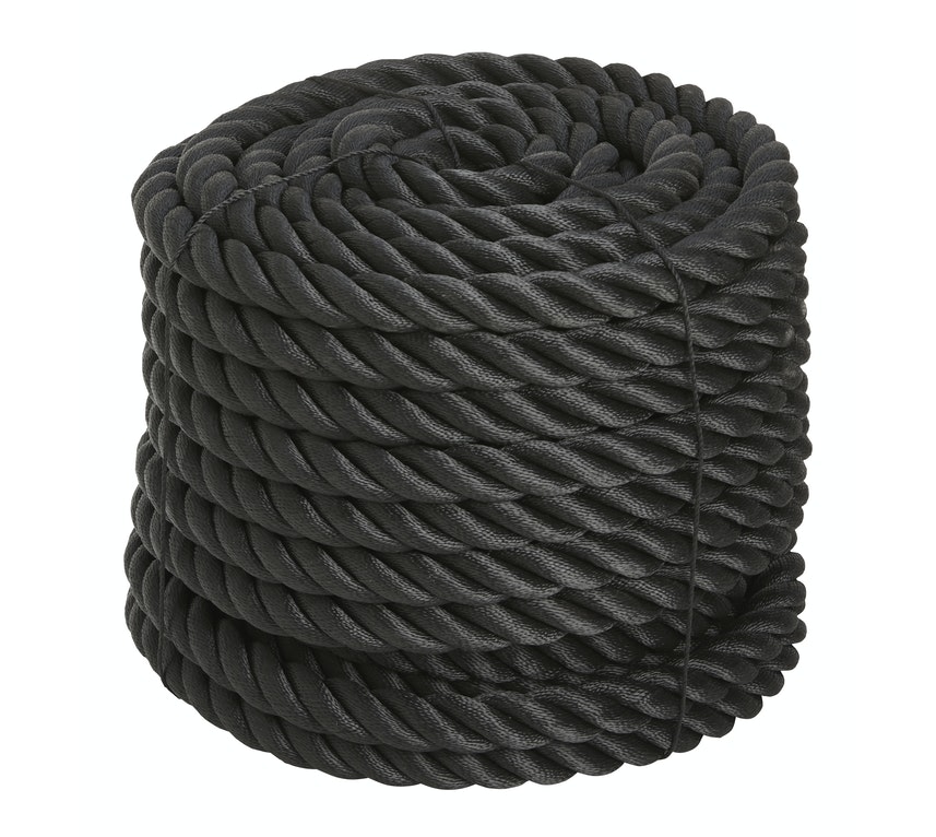 Polypropeenista valmistettu kierretty kaideköysi ei kutistu eikä homehdu. Soveltuu niin ulko- kuin sisäkäyttöön. Köyden paksuus 35 mm ja pituus 40 metriä. Köyden päät sulatettu. Musta.
