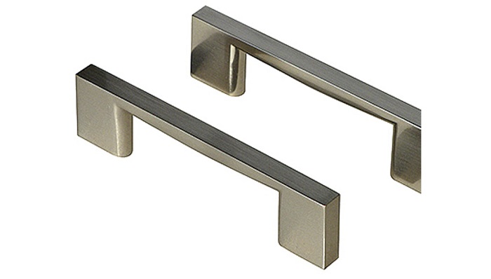 Modernia muotoilua, ruostumaton teräs, pituus 96 mm, pakkauksessa kaksi kappaletta kiinnitysruuveineen.