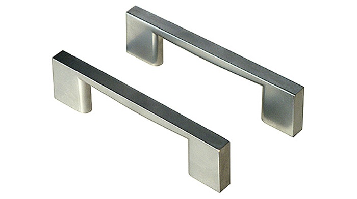 Modernia muotoilua, satiini, pituus 96 mm, pakkauksessa kaksi kappaletta kiinnitysruuveineen.
