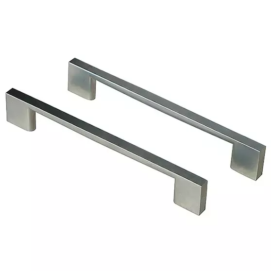 Modernia muotoilua, satiini, pituus 160 mm, pakkauksessa kaksi kappaletta kiinnitysruuveineen.