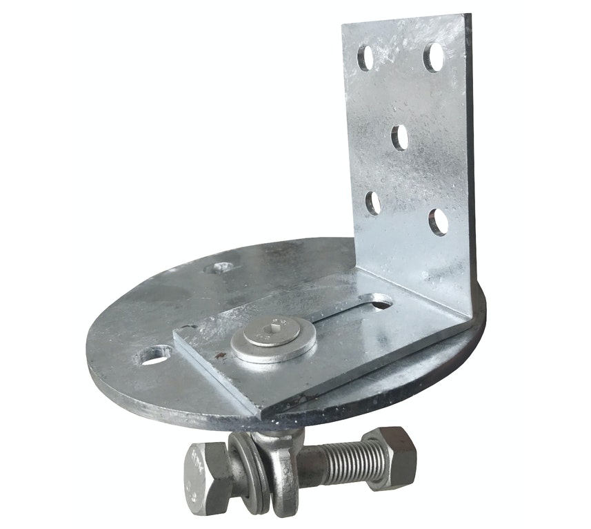 Lattakiinnike 120 mm L-kulmalla, jota käytetään vaakajuoksujen kiinnittämiseen ruuvipaalujen päälle.