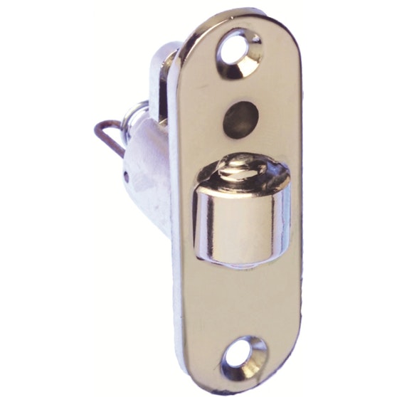 Symmetrinen esim. saunanoviin, ovessa pitää olla vedin, kromattua terästä. Kuvasta poiketen rulla on muovia.