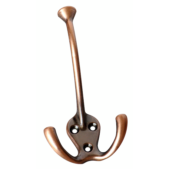 Tyylikästä kodin sisustamista uusilla koukuilla. Alakoukkuja on kaksi ja yläkoukku yksi. Väri antiikkikuparia.