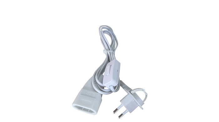 1-osainen eurojatkojohto, jonka pituus on 3 m. Valokytkin H03VVH2-F 2 x 0,75 mm², 2,5 A / 250 V.