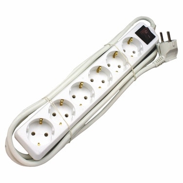 Jatkojohto maadoitettu, 6-osainen, 3 m, valokytkin, H05VV-F 3G 1,5 mm², 16 A/250 V, max. 3500 W.