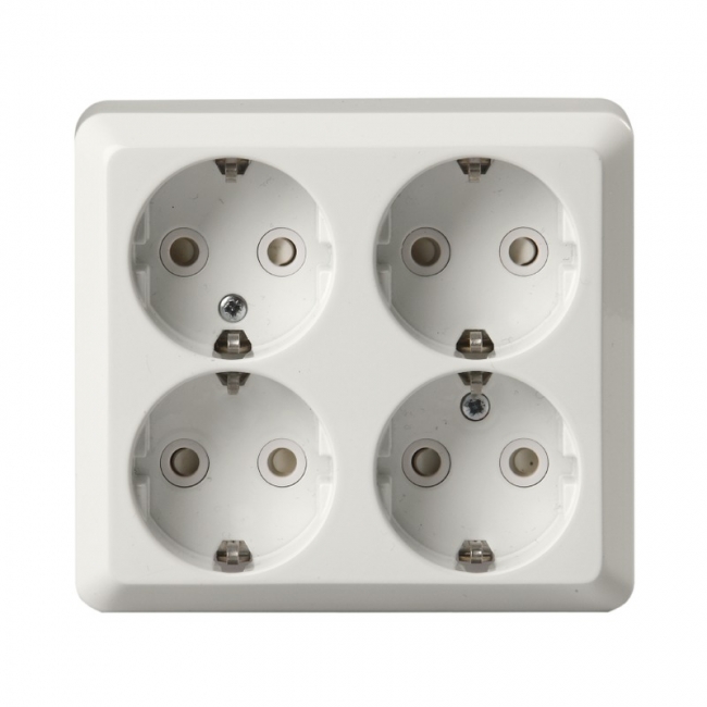 Pistorasia 4-osainen, Jussi, maadoitettu, jousiliittimet, pinta-asennus. Materiaali: Muovi ja metalli. Väri: Valkoinen. Lisätietoa valmistajalta:
