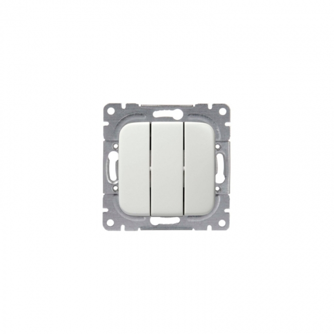 Jussi kytkin 1+1+1, uppoasennus. Asennus vain kuiviin sisätiloihin, peitelevyn kanssa kojerasiaan. Max.16A/250V.