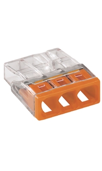 Compact-rasialiitin, 3-napainen. PUSH WIRE® -liitäntämenetelmä. Johtimien poikkipinta-ala 0,5-2.5 mm². ORA. 450 V. In 24 A. Läpinäkyvä. Mittauspiste. Blister-pakkauksessa 30 kpl.