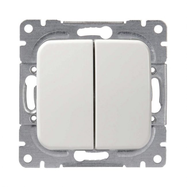 Jussi kytkin 2 vipua uppoasennus. Asennus vain kuiviin sisätiloihin, peitelevyn kanssa kojerasiaan. Max16 /250V.