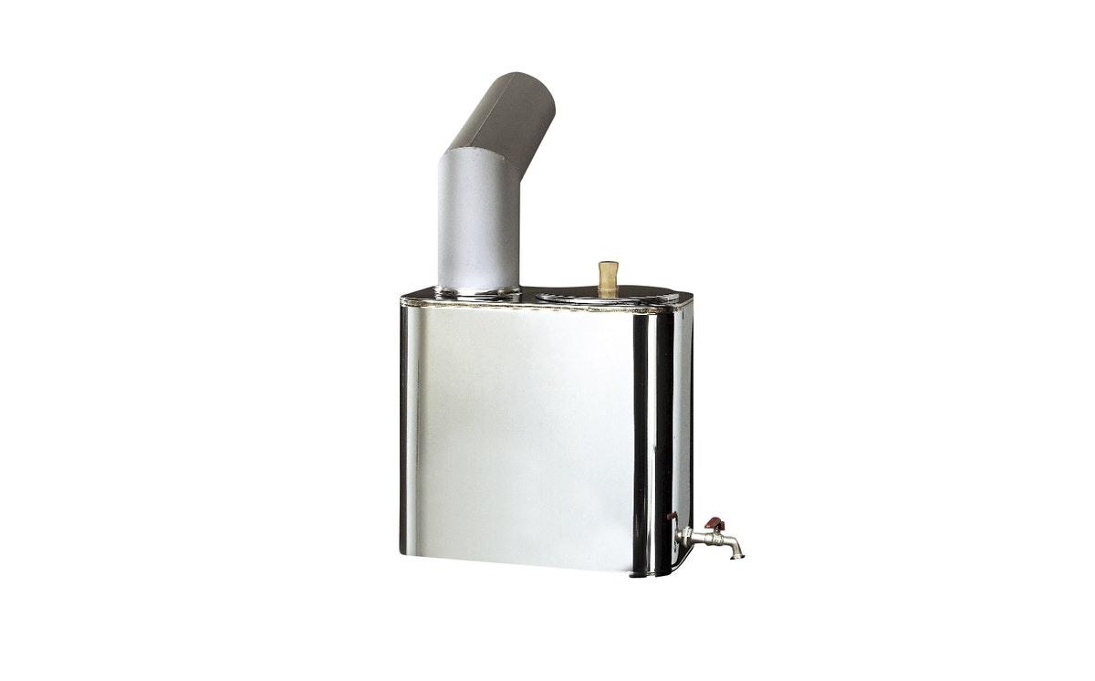 Ruostumattomasta teräksestä valmistettu 30 litran vesisäiliö kuumentaa veden hukkalämmöllä. Säiliön asennustavan ansiosta kiukaan teho ei heikkene eikä tilantarve kasva.
