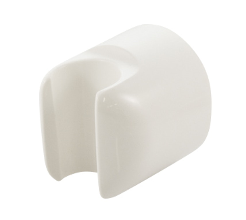 Käsisuihkun ripustin, valkoinen. Tuotteen mitat 19 x 10 x 4,5 cm.